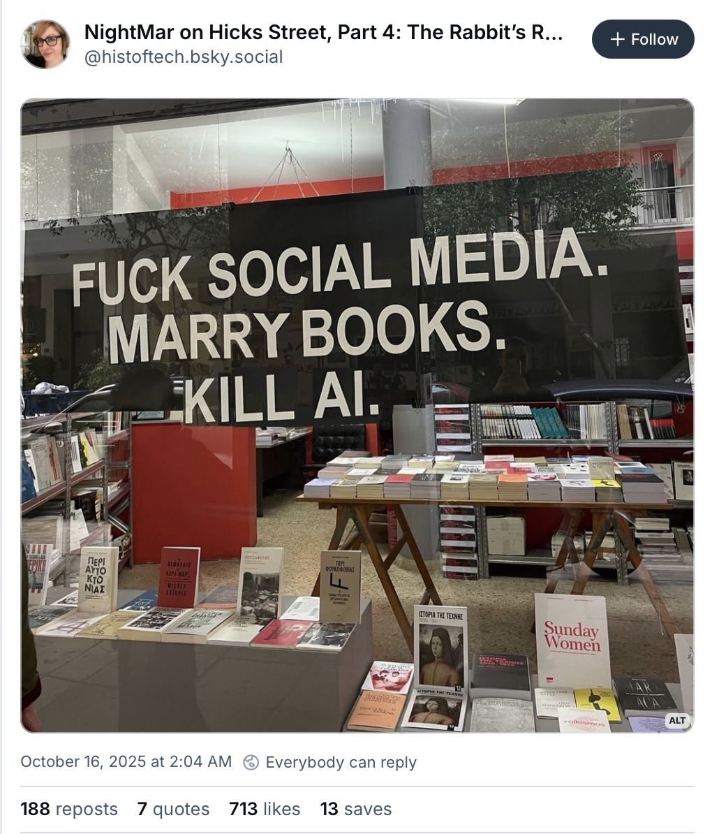 Thanks for reading Second Breakfast. Please consider becoming a paid subscriber, as this is my full-time job – although fair warning: I am taking November and December off from sending emails on a regular basis. (I'm sure I'll still write and send something.) I've got a bunch of talks I'm giving and a book proposal to write. (Hi Susan.)