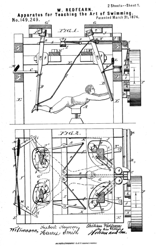I'm not sure what the study of the history of teaching machines designed to train the body can help us see – but I'm curious nonetheless. Like this nineteenth century machine, for example, designed to teach swimming without ever having the student enter the water. Something about control, certainly. Something about safety, maybe. Something about our long-running belief that everything is an engineering problem and that we can craft bodies and brains to that end.
