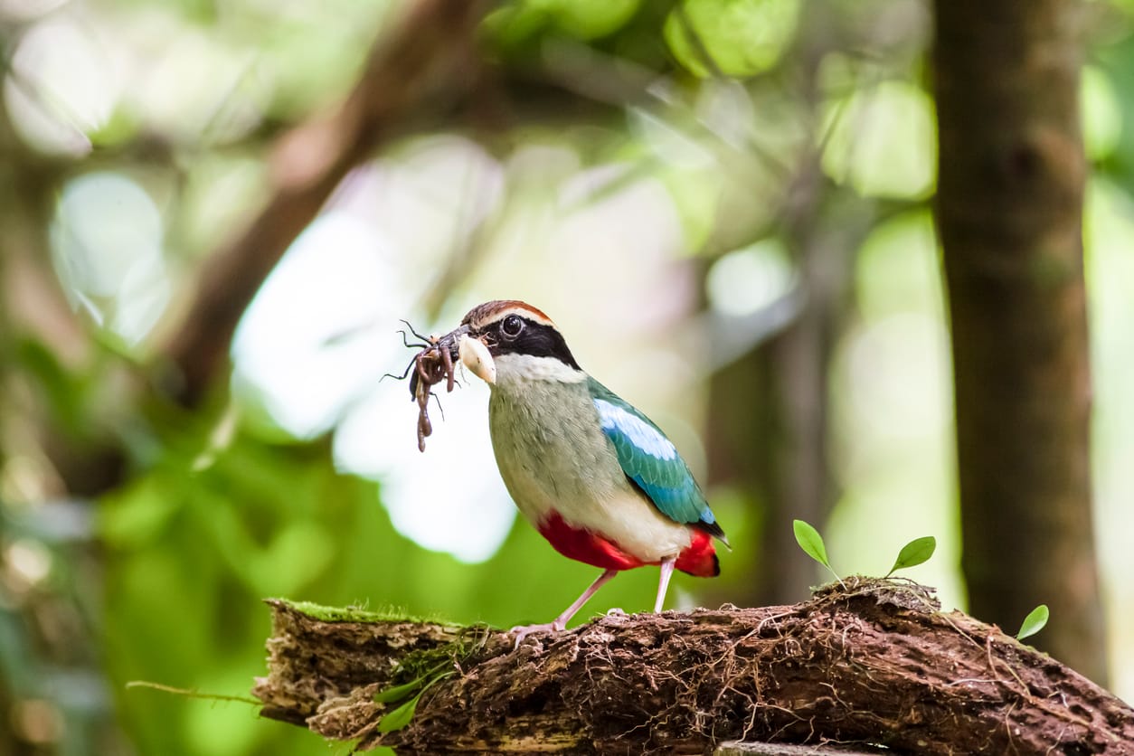 Today’s bird is the fairy pitta, a small colorful bird whose population is sharply declining due to all the threats listed above and more. (The Wikipedia article notes the dangers of hikers, photographers, and bird watchers.) The fairy pitta is a solitary bird and eats primarily earthworms, but from time-to-time, as the photo above indicates, it will choke down a beetle or two.