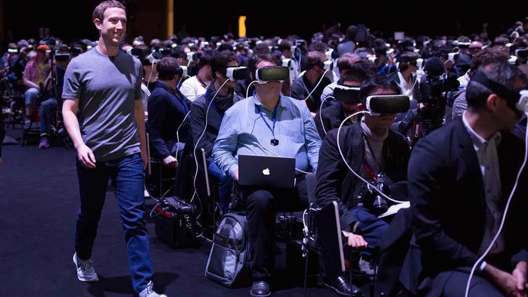 Way back in 2016, Mark Zuckerberg made a surprise appearance at the Mobile World Congress in Barcelona, memorialized in a photograph of him striding to the stage past rows of men with the Oculus Rift VR headsets strapped to their faces: